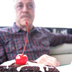 NORM'S BIRTHDAY. Norm Brenner of Los Angeles CA in his Marlon Brando persona, examining his cherry on a piece of chocolate cake.